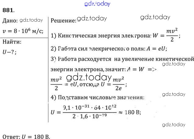 На страницах сайта gdz.today вы найдете учебный и вспомогательный материал, направленный на улучшения знаний школьной программы. ГДЗ - онлайн мир знаний Задачи 881 Задачнику по Физике для 10-11 класса Рымкевич Дрофа УМК 2013