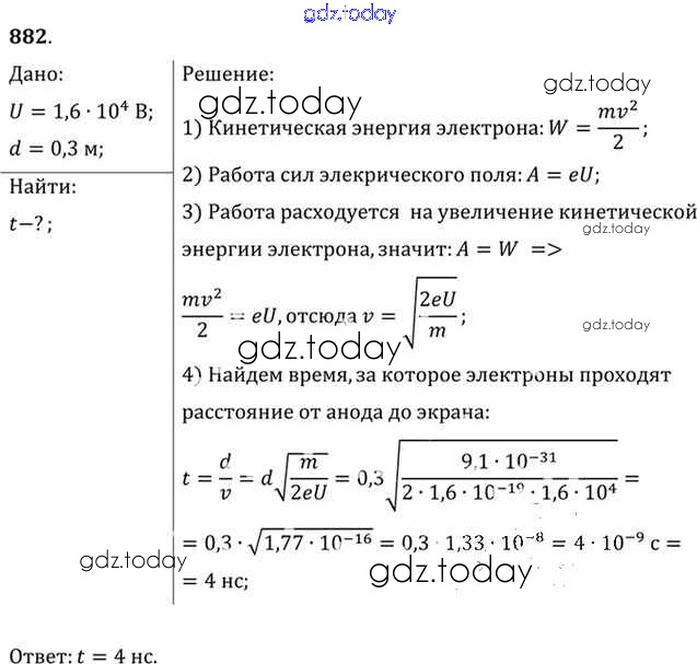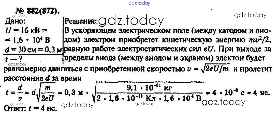 На страницах сайта gdz.today вы найдете учебный и вспомогательный материал, направленный на улучшения знаний школьной программы. ГДЗ - онлайн мир знаний Задачи 882 Задачнику по Физике для 10-11 класса Рымкевич Дрофа УМК 2013