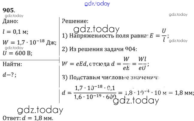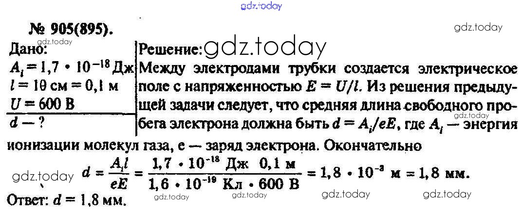 На страницах сайта gdz.today вы найдете учебный и вспомогательный материал, направленный на улучшения знаний школьной программы. ГДЗ - онлайн мир знаний Задачи 905 Задачнику по Физике для 10-11 класса Рымкевич Дрофа УМК 2013