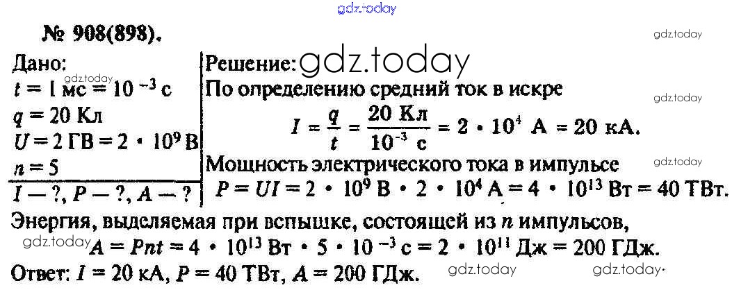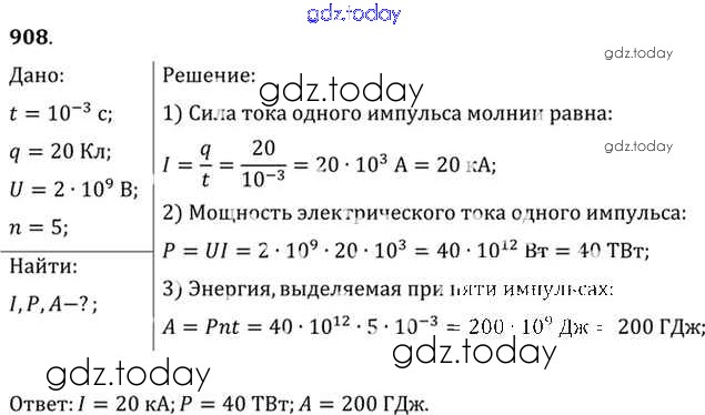 На страницах сайта gdz.today вы найдете учебный и вспомогательный материал, направленный на улучшения знаний школьной программы. ГДЗ - онлайн мир знаний Задачи 908 Задачнику по Физике для 10-11 класса Рымкевич Дрофа УМК 2013