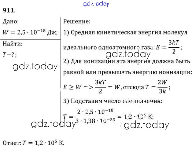 На страницах сайта gdz.today вы найдете учебный и вспомогательный материал, направленный на улучшения знаний школьной программы. ГДЗ - онлайн мир знаний Задачи 911 Задачнику по Физике для 10-11 класса Рымкевич Дрофа УМК 2013