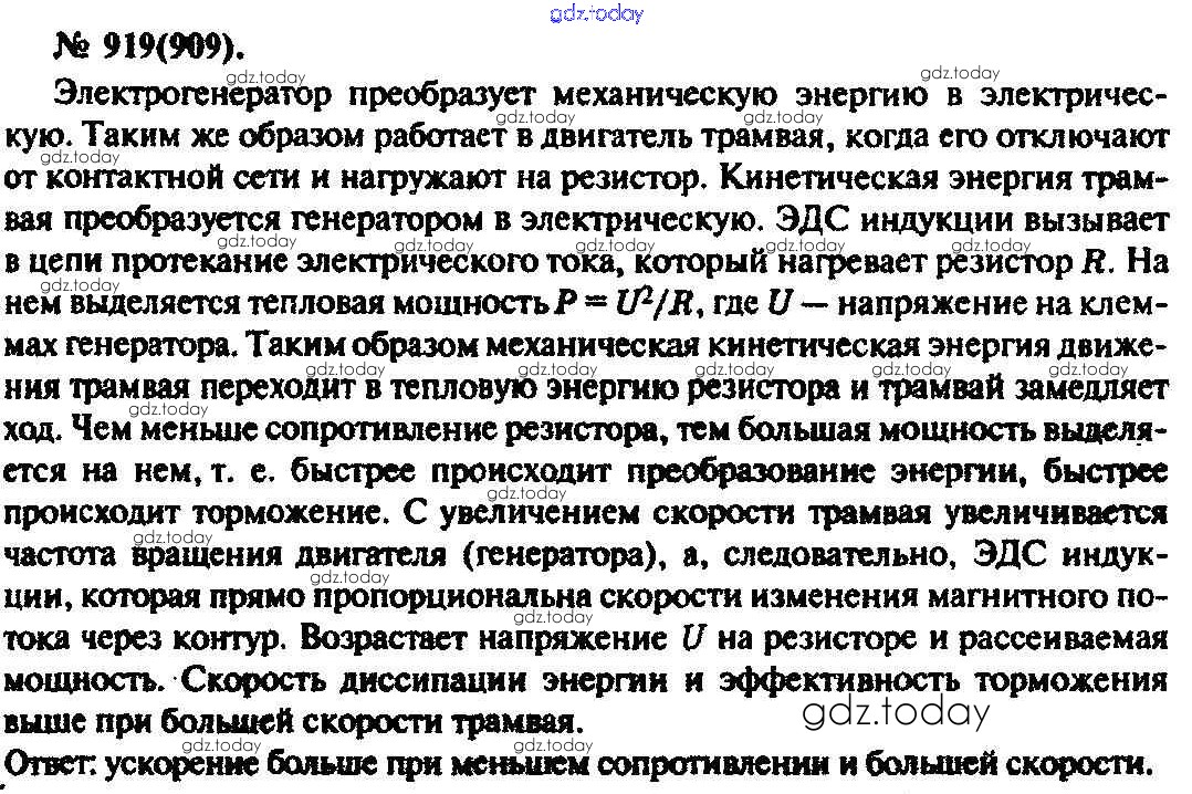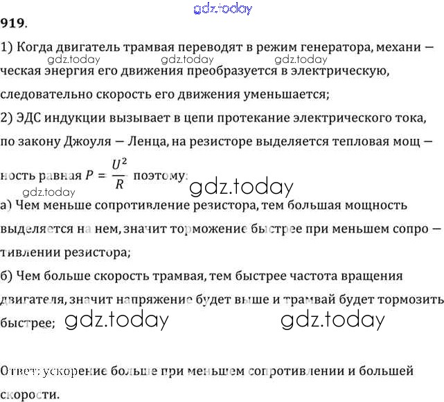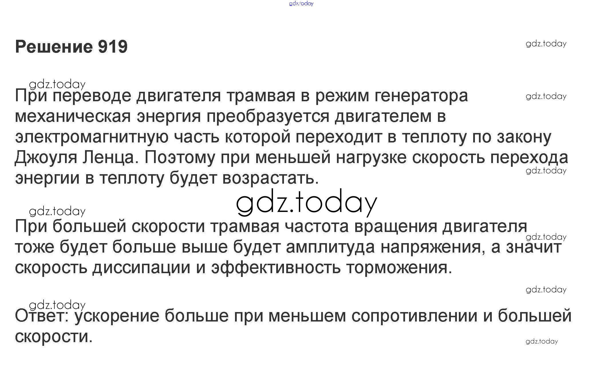 На страницах сайта gdz.today вы найдете учебный и вспомогательный материал, направленный на улучшения знаний школьной программы. ГДЗ - онлайн мир знаний Задачи 919 Задачнику по Физике для 10-11 класса Рымкевич Дрофа УМК 2013