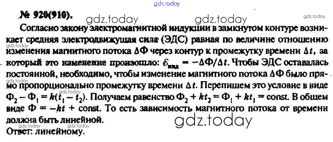 На страницах сайта gdz.today вы найдете учебный и вспомогательный материал, направленный на улучшения знаний школьной программы. ГДЗ - онлайн мир знаний Задачи 920 Задачнику по Физике для 10-11 класса Рымкевич Дрофа УМК 2013
