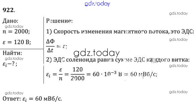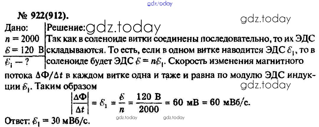 На страницах сайта gdz.today вы найдете учебный и вспомогательный материал, направленный на улучшения знаний школьной программы. ГДЗ - онлайн мир знаний Задачи 922 Задачнику по Физике для 10-11 класса Рымкевич Дрофа УМК 2013