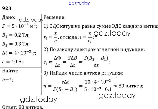 На страницах сайта gdz.today вы найдете учебный и вспомогательный материал, направленный на улучшения знаний школьной программы. ГДЗ - онлайн мир знаний Задачи 923 Задачнику по Физике для 10-11 класса Рымкевич Дрофа УМК 2013