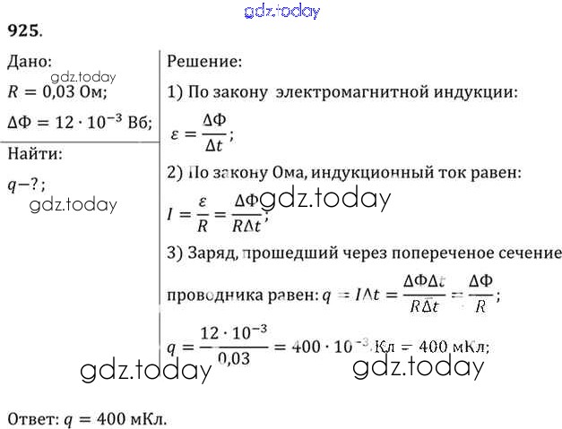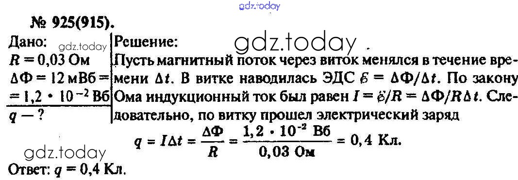 На страницах сайта gdz.today вы найдете учебный и вспомогательный материал, направленный на улучшения знаний школьной программы. ГДЗ - онлайн мир знаний Задачи 925 Задачнику по Физике для 10-11 класса Рымкевич Дрофа УМК 2013