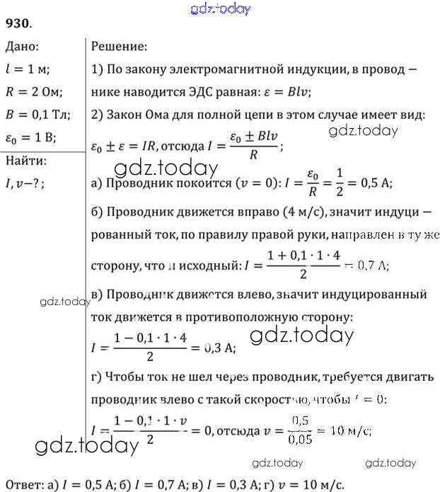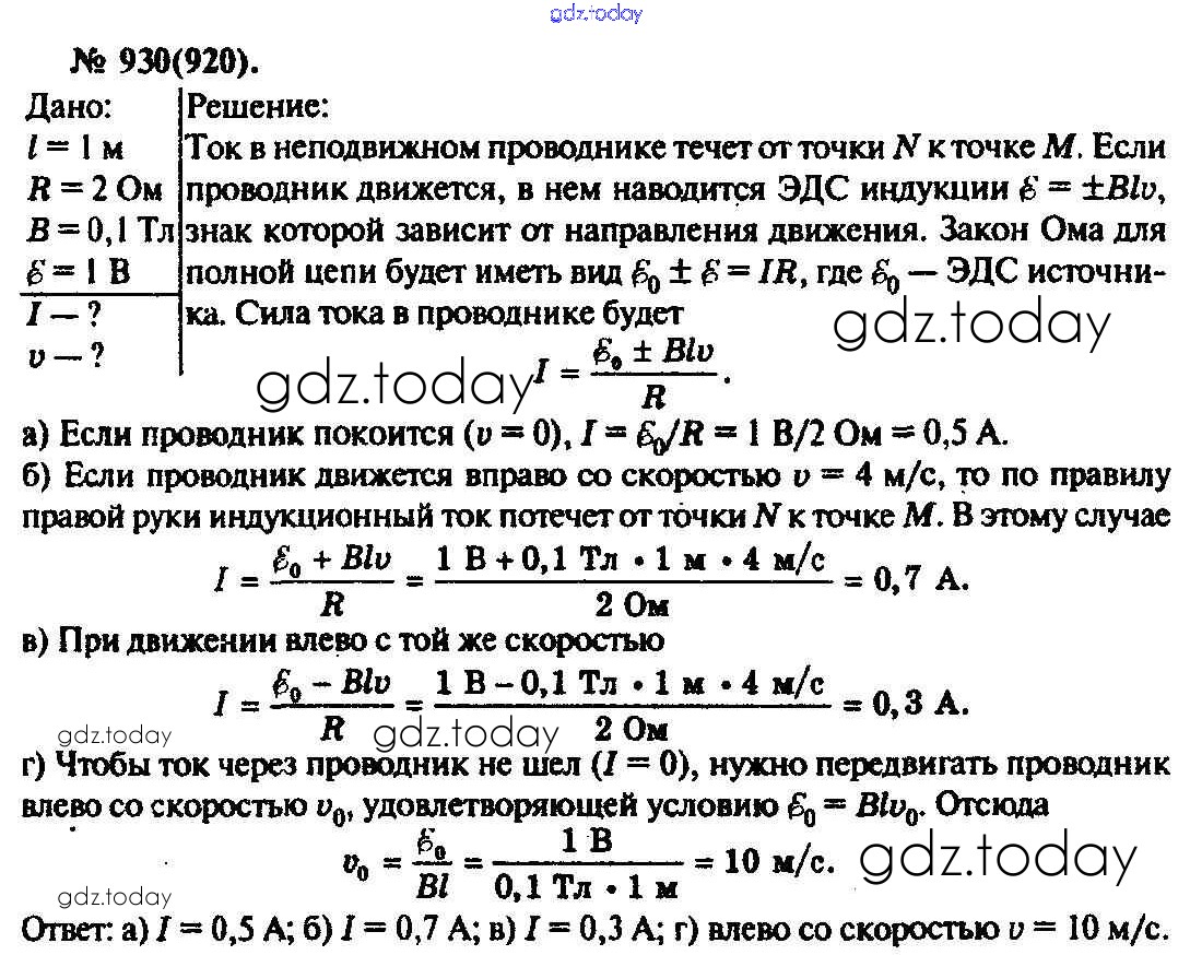 На страницах сайта gdz.today вы найдете учебный и вспомогательный материал, направленный на улучшения знаний школьной программы. ГДЗ - онлайн мир знаний Задачи 930 Задачнику по Физике для 10-11 класса Рымкевич Дрофа УМК 2013
