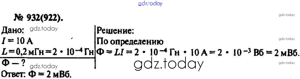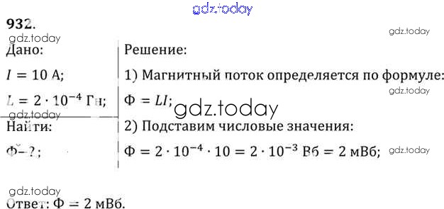На страницах сайта gdz.today вы найдете учебный и вспомогательный материал, направленный на улучшения знаний школьной программы. ГДЗ - онлайн мир знаний Задачи 932 Задачнику по Физике для 10-11 класса Рымкевич Дрофа УМК 2013