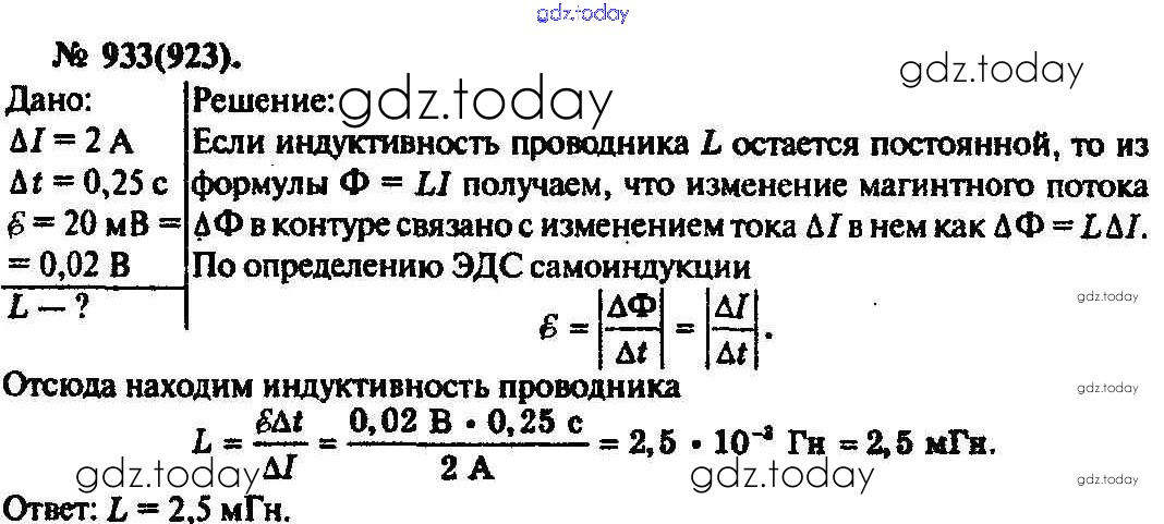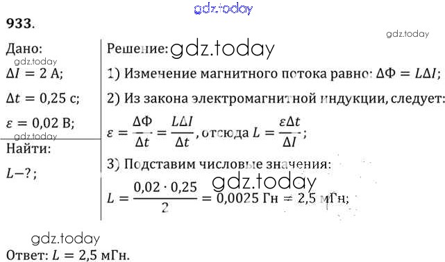 На страницах сайта gdz.today вы найдете учебный и вспомогательный материал, направленный на улучшения знаний школьной программы. ГДЗ - онлайн мир знаний Задачи 933 Задачнику по Физике для 10-11 класса Рымкевич Дрофа УМК 2013