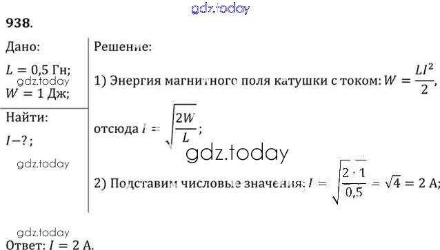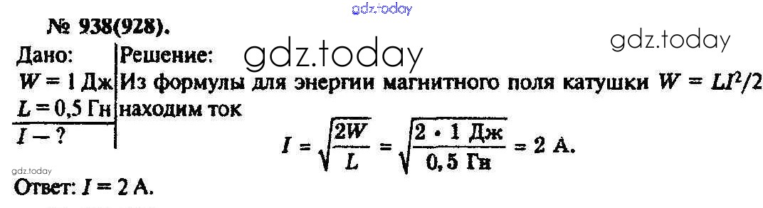 На страницах сайта gdz.today вы найдете учебный и вспомогательный материал, направленный на улучшения знаний школьной программы. ГДЗ - онлайн мир знаний Задачи 938 Задачнику по Физике для 10-11 класса Рымкевич Дрофа УМК 2013