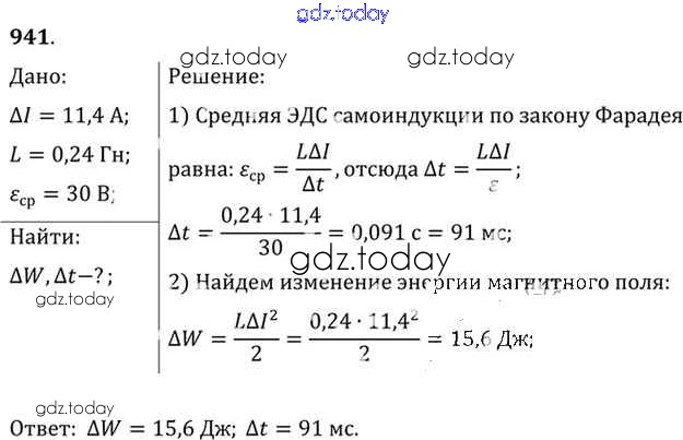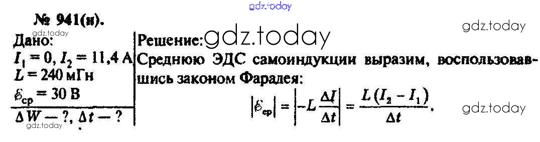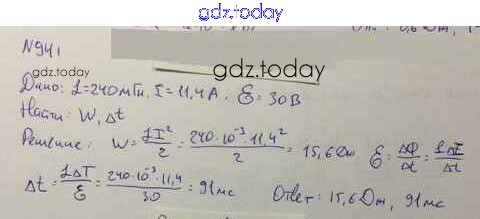 На страницах сайта gdz.today вы найдете учебный и вспомогательный материал, направленный на улучшения знаний школьной программы. ГДЗ - онлайн мир знаний Задачи 941 Задачнику по Физике для 10-11 класса Рымкевич Дрофа УМК 2013