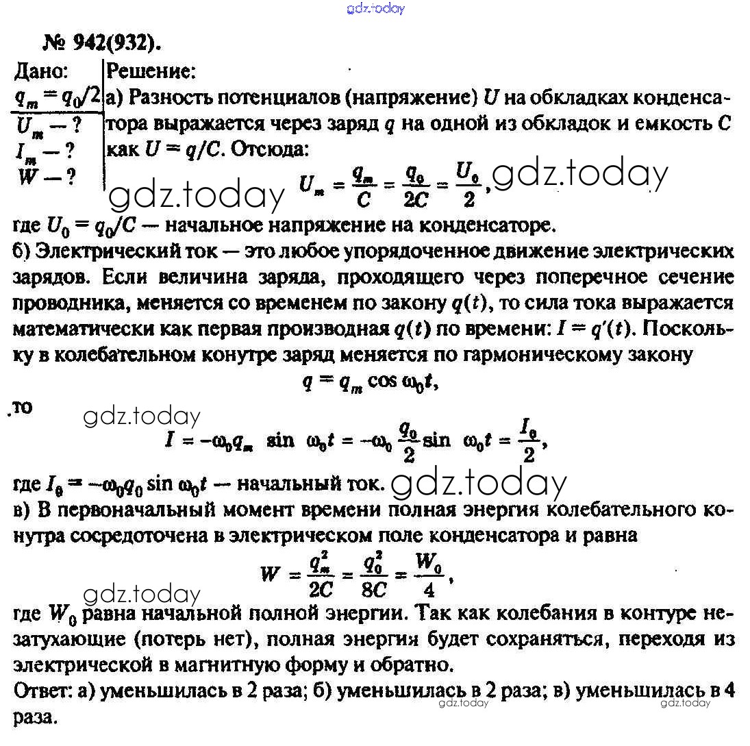 На страницах сайта gdz.today вы найдете учебный и вспомогательный материал, направленный на улучшения знаний школьной программы. ГДЗ - онлайн мир знаний Задачи 942 Задачнику по Физике для 10-11 класса Рымкевич Дрофа УМК 2013