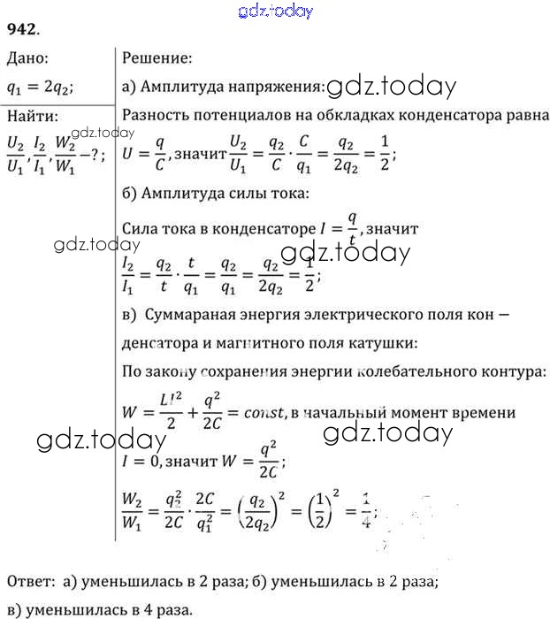 Ответы к Задачи 942 Задачнику по Физике для 10-11 класса Рымкевич Дрофа УМК 2013