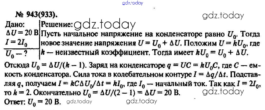 На страницах сайта gdz.today вы найдете учебный и вспомогательный материал, направленный на улучшения знаний школьной программы. ГДЗ - онлайн мир знаний Задачи 943 Задачнику по Физике для 10-11 класса Рымкевич Дрофа УМК 2013