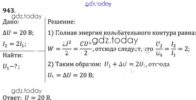Ответы к Задачи 943 Задачнику по Физике для 10-11 класса Рымкевич Дрофа УМК 2013