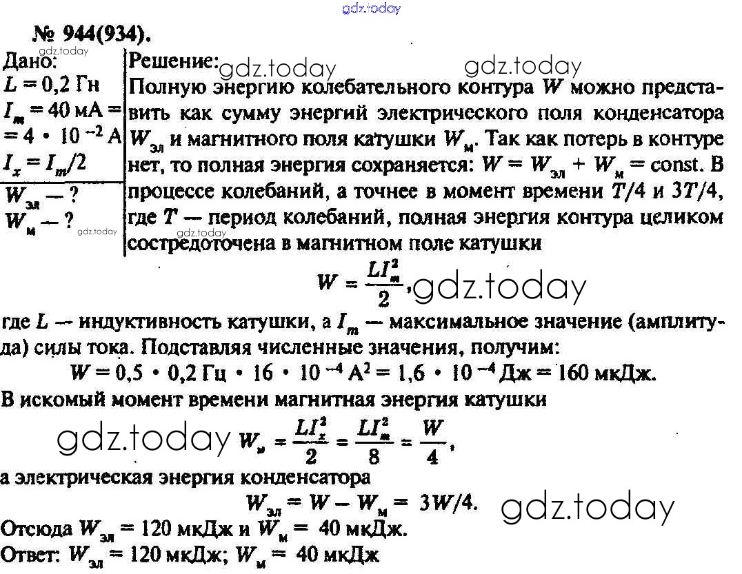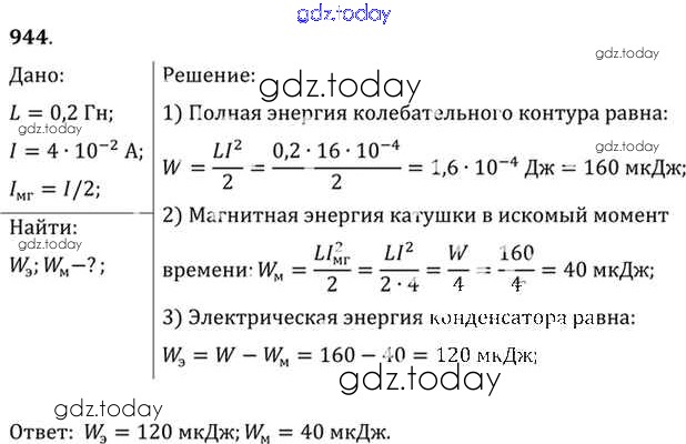 На страницах сайта gdz.today вы найдете учебный и вспомогательный материал, направленный на улучшения знаний школьной программы. ГДЗ - онлайн мир знаний Задачи 944 Задачнику по Физике для 10-11 класса Рымкевич Дрофа УМК 2013