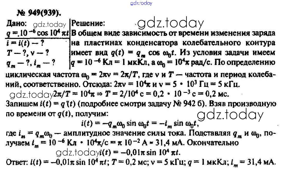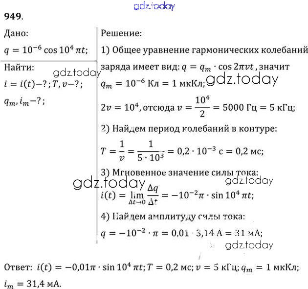 На страницах сайта gdz.today вы найдете учебный и вспомогательный материал, направленный на улучшения знаний школьной программы. ГДЗ - онлайн мир знаний Задачи 949 Задачнику по Физике для 10-11 класса Рымкевич Дрофа УМК 2013