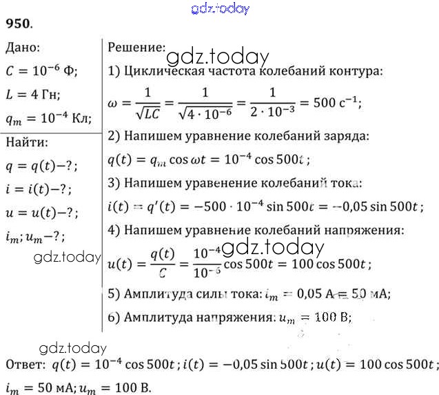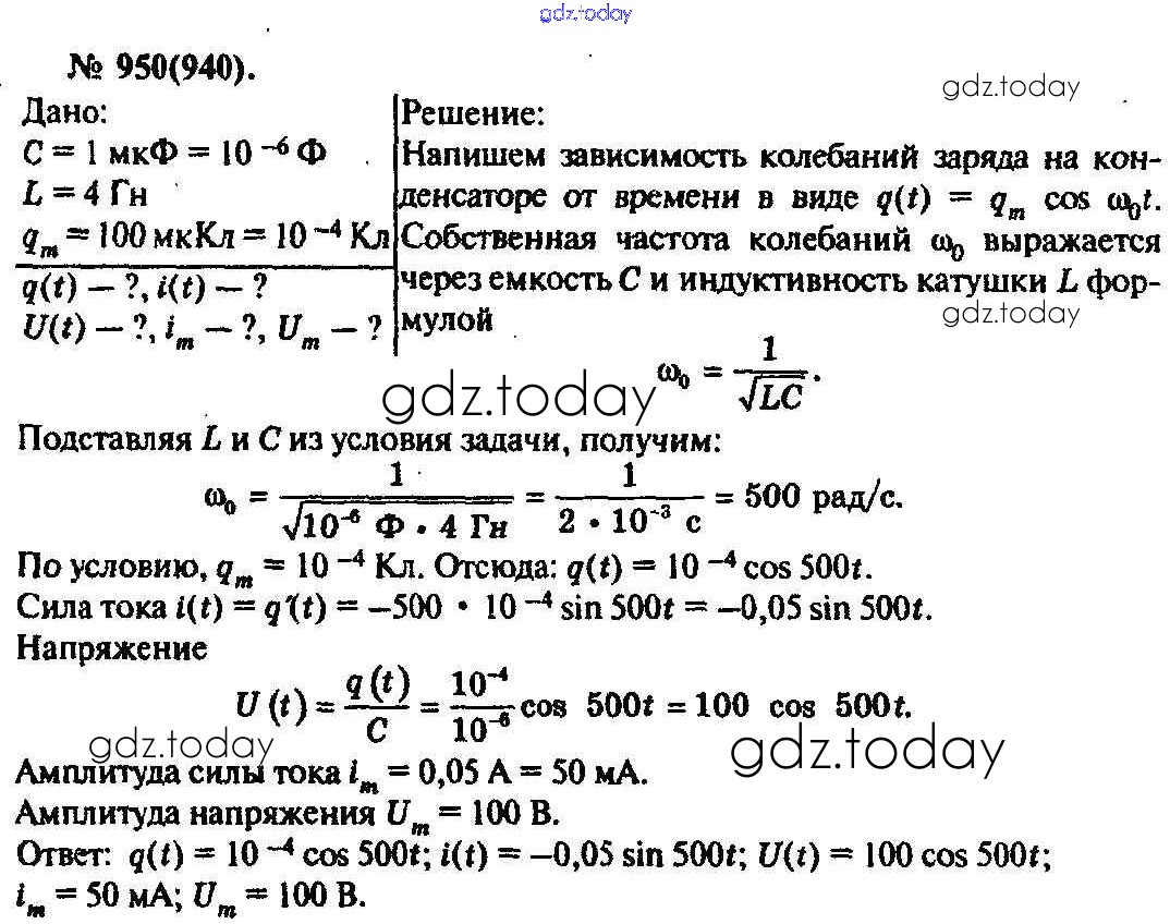 На страницах сайта gdz.today вы найдете учебный и вспомогательный материал, направленный на улучшения знаний школьной программы. ГДЗ - онлайн мир знаний Задачи 950 Задачнику по Физике для 10-11 класса Рымкевич Дрофа УМК 2013