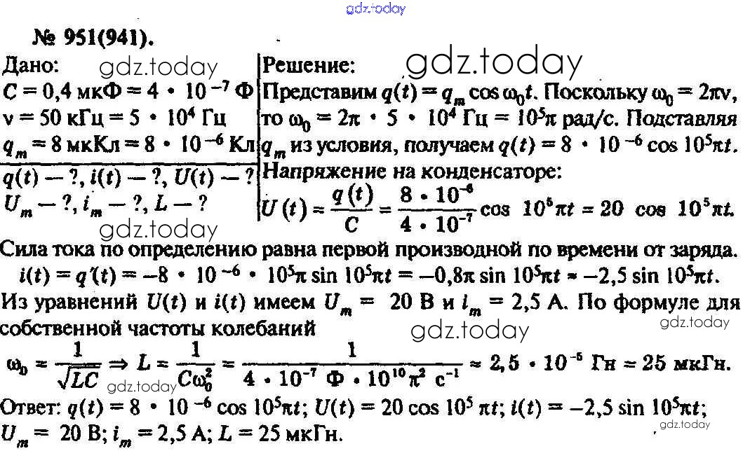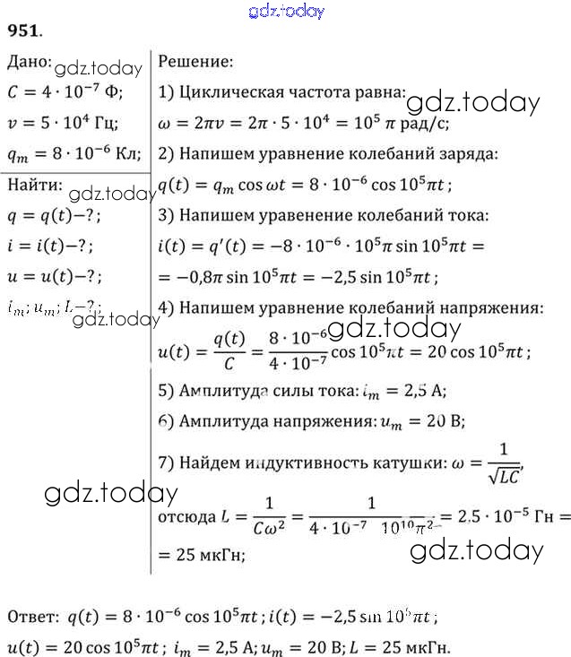 На страницах сайта gdz.today вы найдете учебный и вспомогательный материал, направленный на улучшения знаний школьной программы. ГДЗ - онлайн мир знаний Задачи 951 Задачнику по Физике для 10-11 класса Рымкевич Дрофа УМК 2013