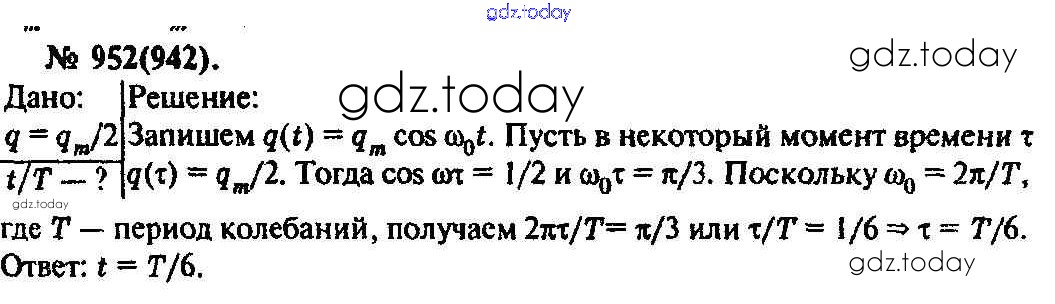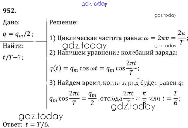 На страницах сайта gdz.today вы найдете учебный и вспомогательный материал, направленный на улучшения знаний школьной программы. ГДЗ - онлайн мир знаний Задачи 952 Задачнику по Физике для 10-11 класса Рымкевич Дрофа УМК 2013