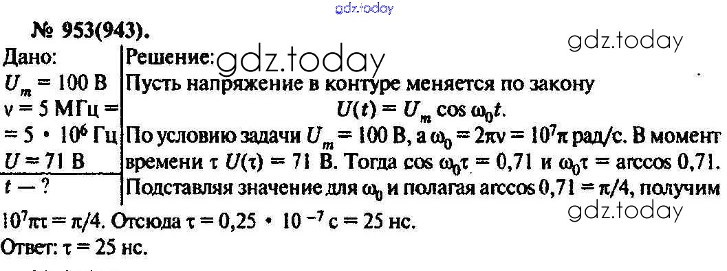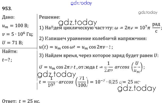 На страницах сайта gdz.today вы найдете учебный и вспомогательный материал, направленный на улучшения знаний школьной программы. ГДЗ - онлайн мир знаний Задачи 953 Задачнику по Физике для 10-11 класса Рымкевич Дрофа УМК 2013