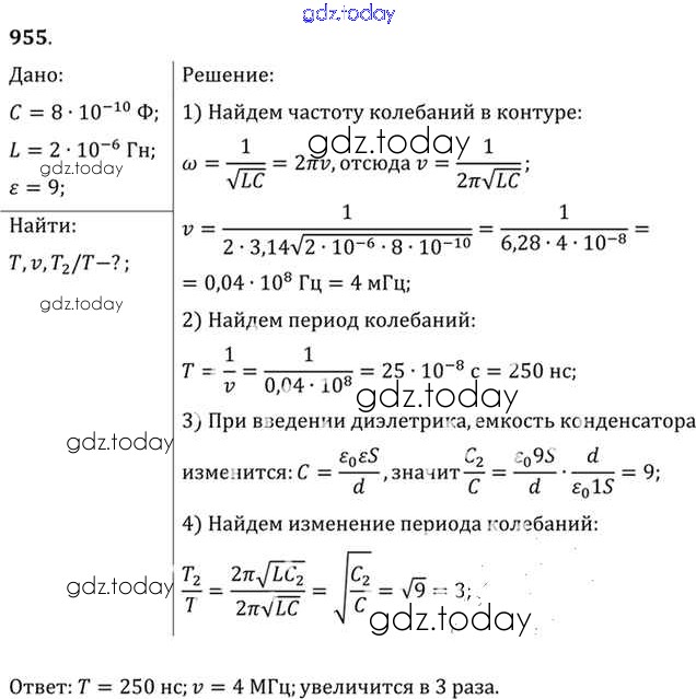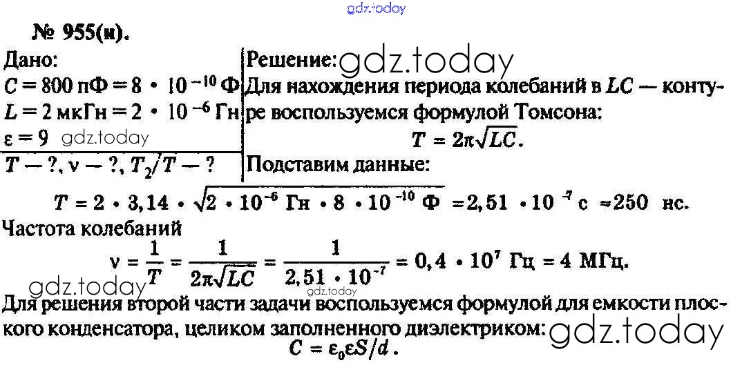 На страницах сайта gdz.today вы найдете учебный и вспомогательный материал, направленный на улучшения знаний школьной программы. ГДЗ - онлайн мир знаний Задачи 955 Задачнику по Физике для 10-11 класса Рымкевич Дрофа УМК 2013