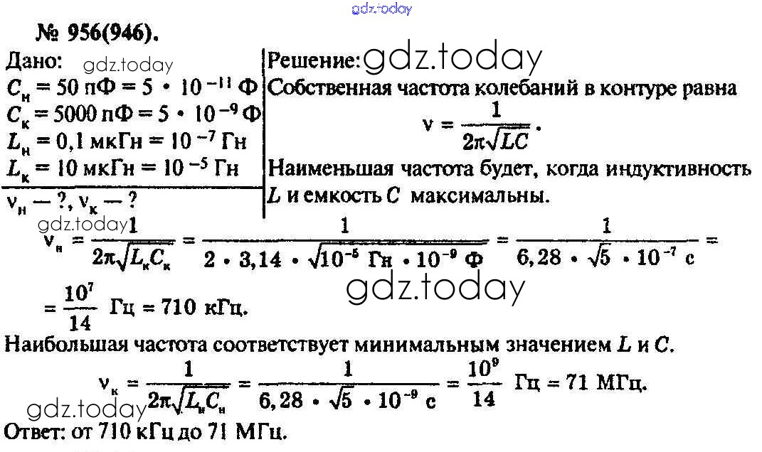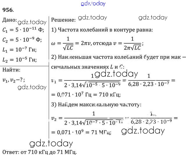 На страницах сайта gdz.today вы найдете учебный и вспомогательный материал, направленный на улучшения знаний школьной программы. ГДЗ - онлайн мир знаний Задачи 956 Задачнику по Физике для 10-11 класса Рымкевич Дрофа УМК 2013