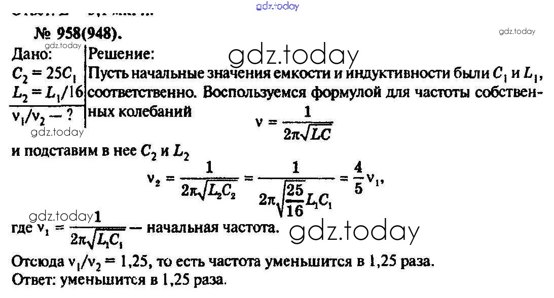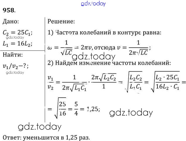 На страницах сайта gdz.today вы найдете учебный и вспомогательный материал, направленный на улучшения знаний школьной программы. ГДЗ - онлайн мир знаний Задачи 958 Задачнику по Физике для 10-11 класса Рымкевич Дрофа УМК 2013