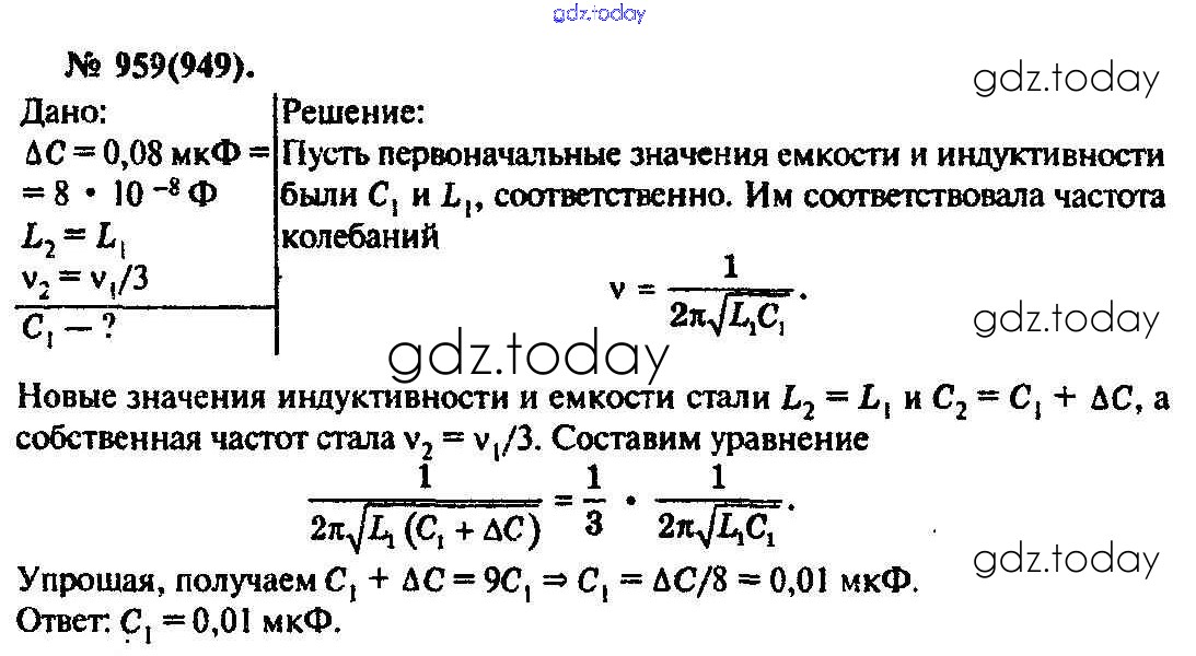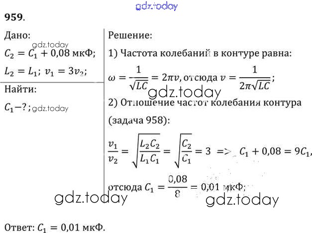 На страницах сайта gdz.today вы найдете учебный и вспомогательный материал, направленный на улучшения знаний школьной программы. ГДЗ - онлайн мир знаний Задачи 959 Задачнику по Физике для 10-11 класса Рымкевич Дрофа УМК 2013