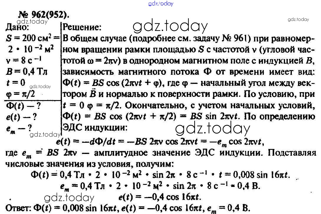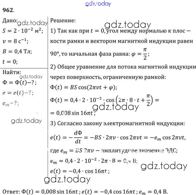 На страницах сайта gdz.today вы найдете учебный и вспомогательный материал, направленный на улучшения знаний школьной программы. ГДЗ - онлайн мир знаний Задачи 962 Задачнику по Физике для 10-11 класса Рымкевич Дрофа УМК 2013