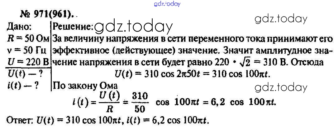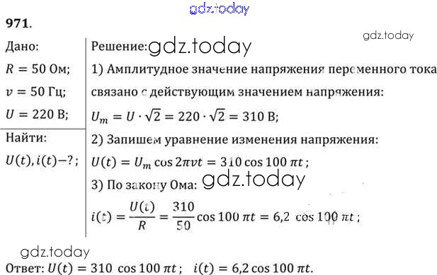 На страницах сайта gdz.today вы найдете учебный и вспомогательный материал, направленный на улучшения знаний школьной программы. ГДЗ - онлайн мир знаний Задачи 971 Задачнику по Физике для 10-11 класса Рымкевич Дрофа УМК 2013