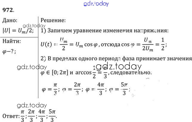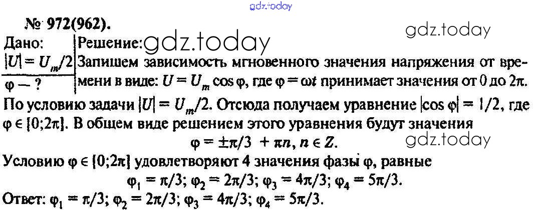 На страницах сайта gdz.today вы найдете учебный и вспомогательный материал, направленный на улучшения знаний школьной программы. ГДЗ - онлайн мир знаний Задачи 972 Задачнику по Физике для 10-11 класса Рымкевич Дрофа УМК 2013
