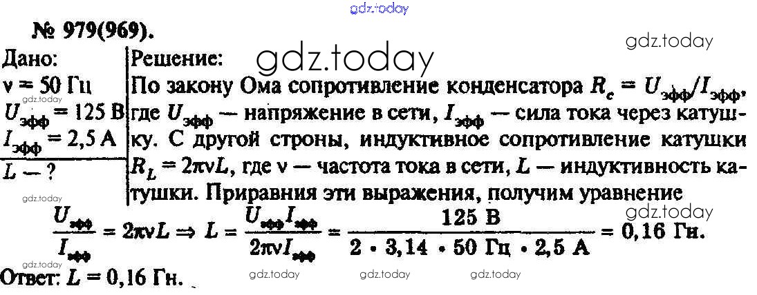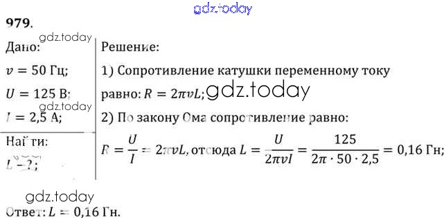 На страницах сайта gdz.today вы найдете учебный и вспомогательный материал, направленный на улучшения знаний школьной программы. ГДЗ - онлайн мир знаний Задачи 979 Задачнику по Физике для 10-11 класса Рымкевич Дрофа УМК 2013