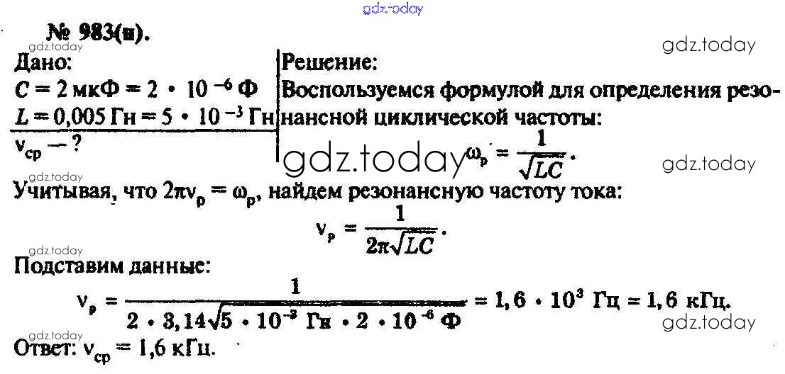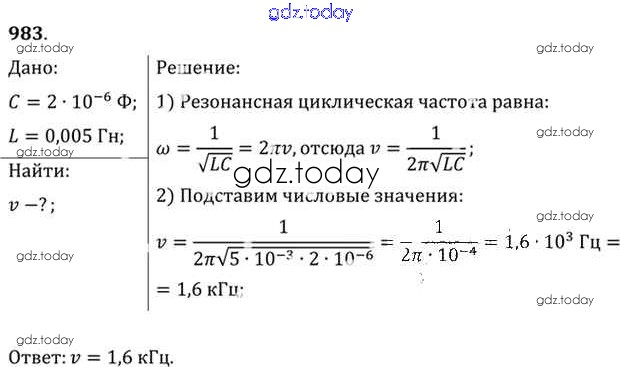На страницах сайта gdz.today вы найдете учебный и вспомогательный материал, направленный на улучшения знаний школьной программы. ГДЗ - онлайн мир знаний Задачи 983 Задачнику по Физике для 10-11 класса Рымкевич Дрофа УМК 2013