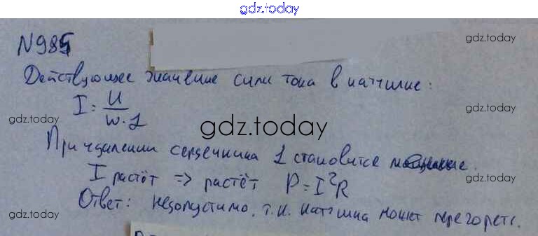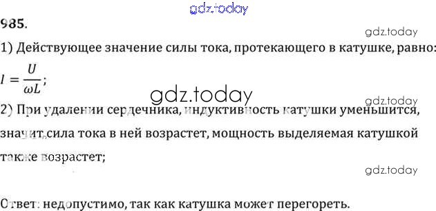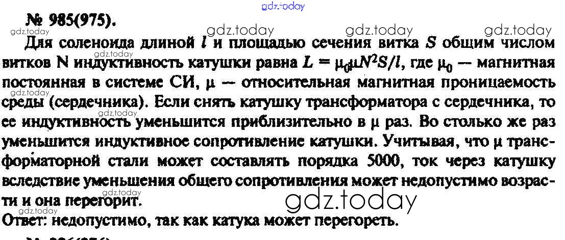 На страницах сайта gdz.today вы найдете учебный и вспомогательный материал, направленный на улучшения знаний школьной программы. ГДЗ - онлайн мир знаний Задачи 985 Задачнику по Физике для 10-11 класса Рымкевич Дрофа УМК 2013