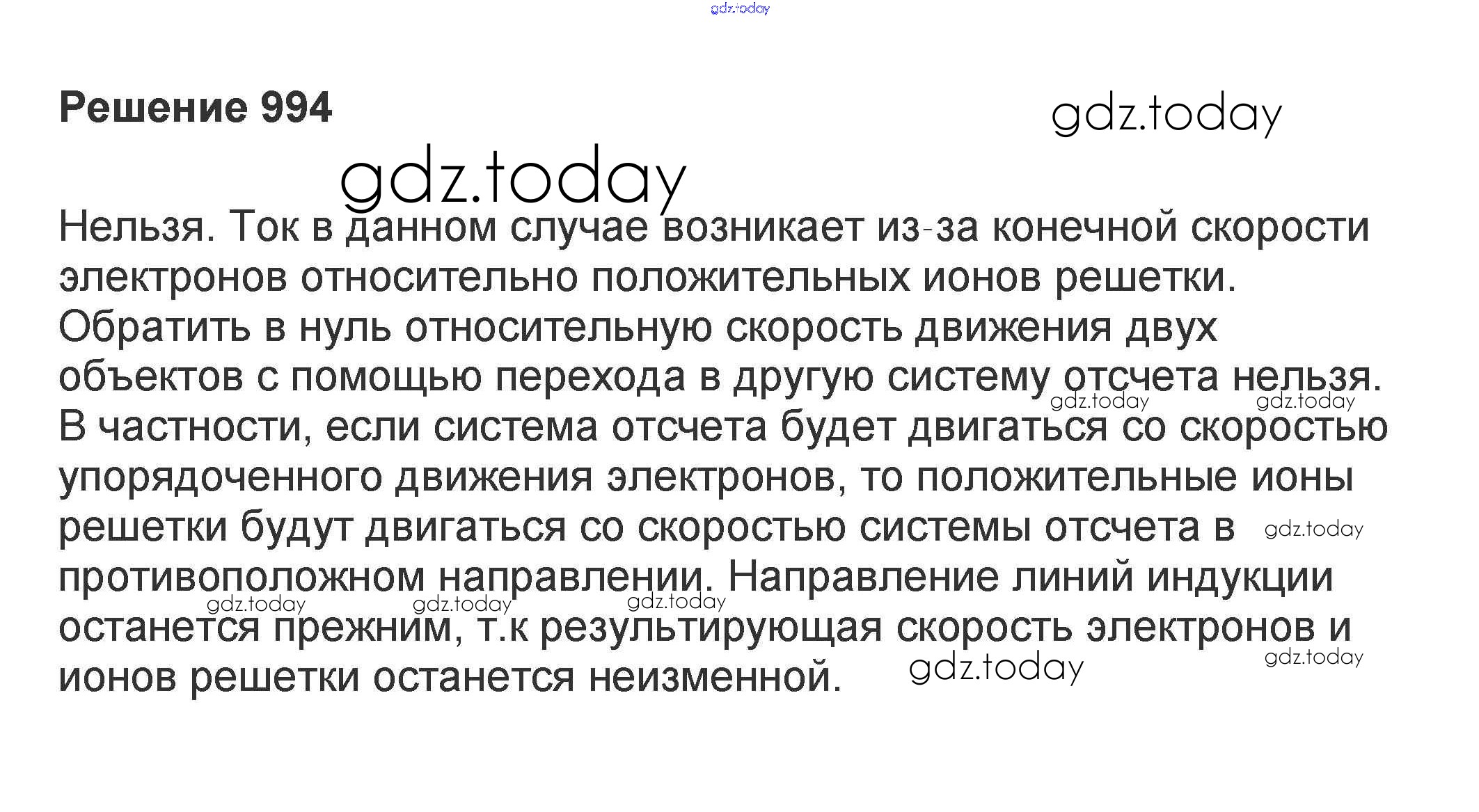 На страницах сайта gdz.today вы найдете учебный и вспомогательный материал, направленный на улучшения знаний школьной программы. ГДЗ - онлайн мир знаний Задачи 994 Задачнику по Физике для 10-11 класса Рымкевич Дрофа УМК 2013