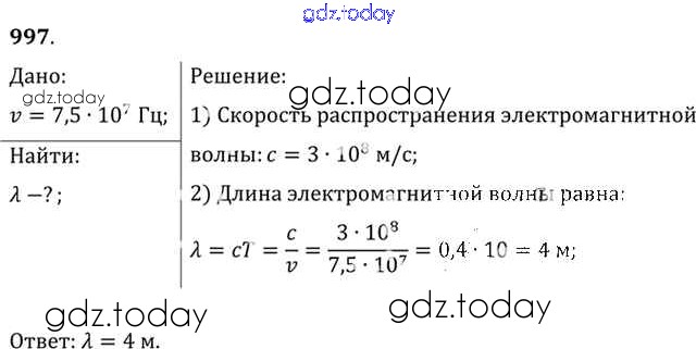 На страницах сайта gdz.today вы найдете учебный и вспомогательный материал, направленный на улучшения знаний школьной программы. ГДЗ - онлайн мир знаний Задачи 997 Задачнику по Физике для 10-11 класса Рымкевич Дрофа УМК 2013