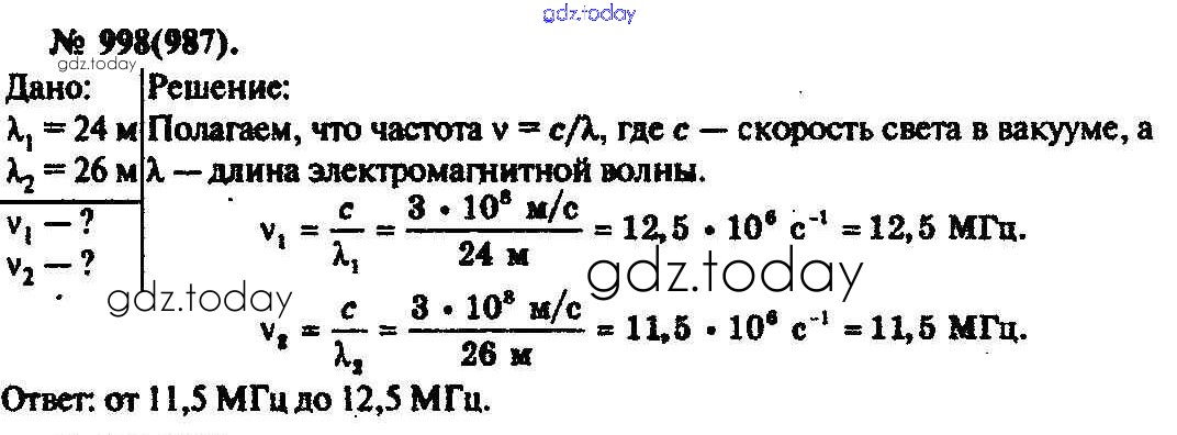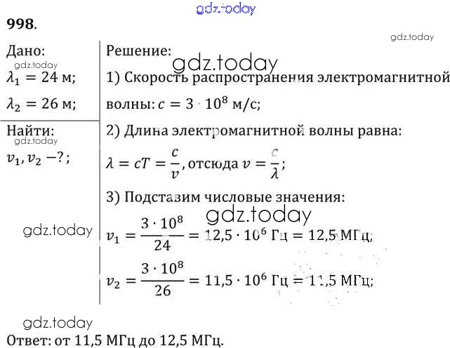 На страницах сайта gdz.today вы найдете учебный и вспомогательный материал, направленный на улучшения знаний школьной программы. ГДЗ - онлайн мир знаний Задачи 998 Задачнику по Физике для 10-11 класса Рымкевич Дрофа УМК 2013