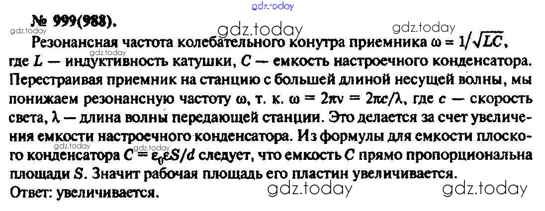 На страницах сайта gdz.today вы найдете учебный и вспомогательный материал, направленный на улучшения знаний школьной программы. ГДЗ - онлайн мир знаний Задачи 999 Задачнику по Физике для 10-11 класса Рымкевич Дрофа УМК 2013