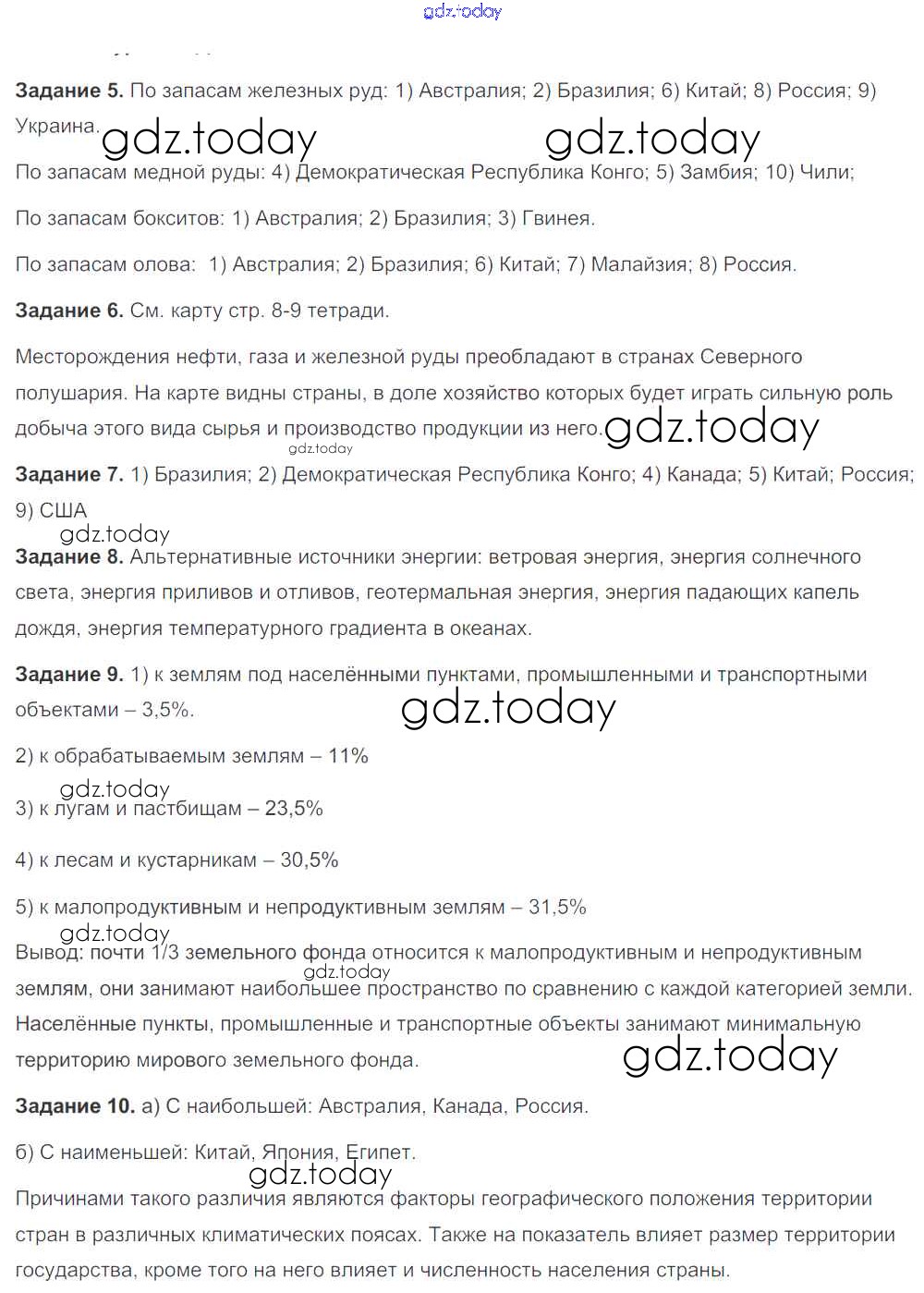 Ответы к Решение к теме 2. Природа и человек в современном мире (стр. 7-11) страница 10 Рабочей тетради по Географии для 10-11 класса Максаковский, Заяц Просвещение 2019