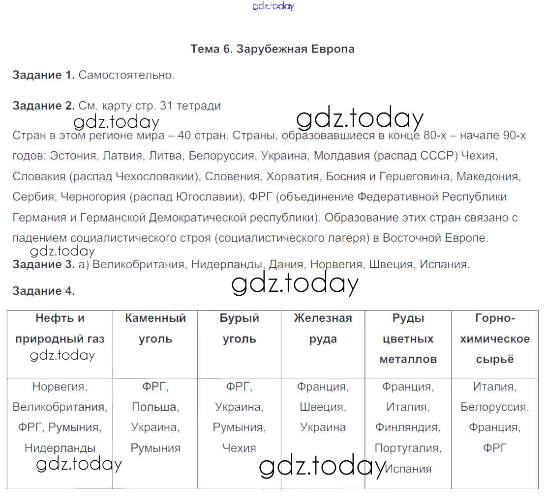 На страницах сайта gdz.today вы найдете учебный и вспомогательный материал, направленный на улучшения знаний школьной программы. ГДЗ - онлайн мир знаний Решение к теме 6. Зарубежная Европа (стр. 30-35) страница 30 Рабочей тетради по Географии для 10-11 класса Максаковский, Заяц Просвещение 2019