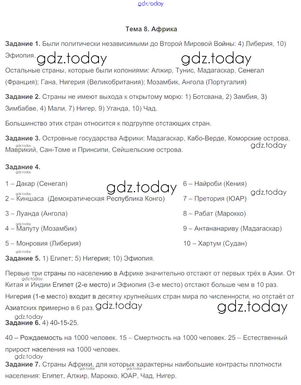 Ответы к Решение к теме 8. Африка (стр. 43-46) страница 43 Рабочей тетради по Географии для 10-11 класса Максаковский, Заяц Просвещение 2019