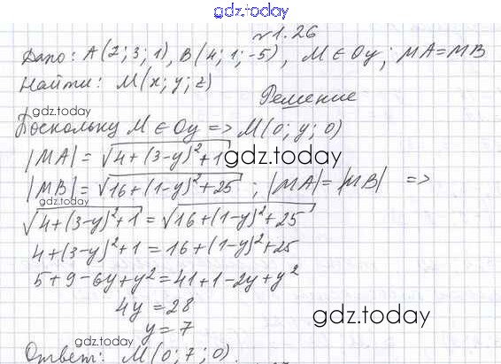 Ответы к Решение к §1 1.26 Учебнику по Геометрии для 11 класса Мерзляк, Номировский Базовый уровень Вентана-граф Алгоритм успеха 2019