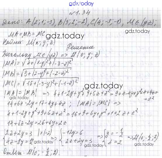 Ответы к Решение к §1 1.34 Учебнику по Геометрии для 11 класса Мерзляк, Номировский Базовый уровень Вентана-граф Алгоритм успеха 2019