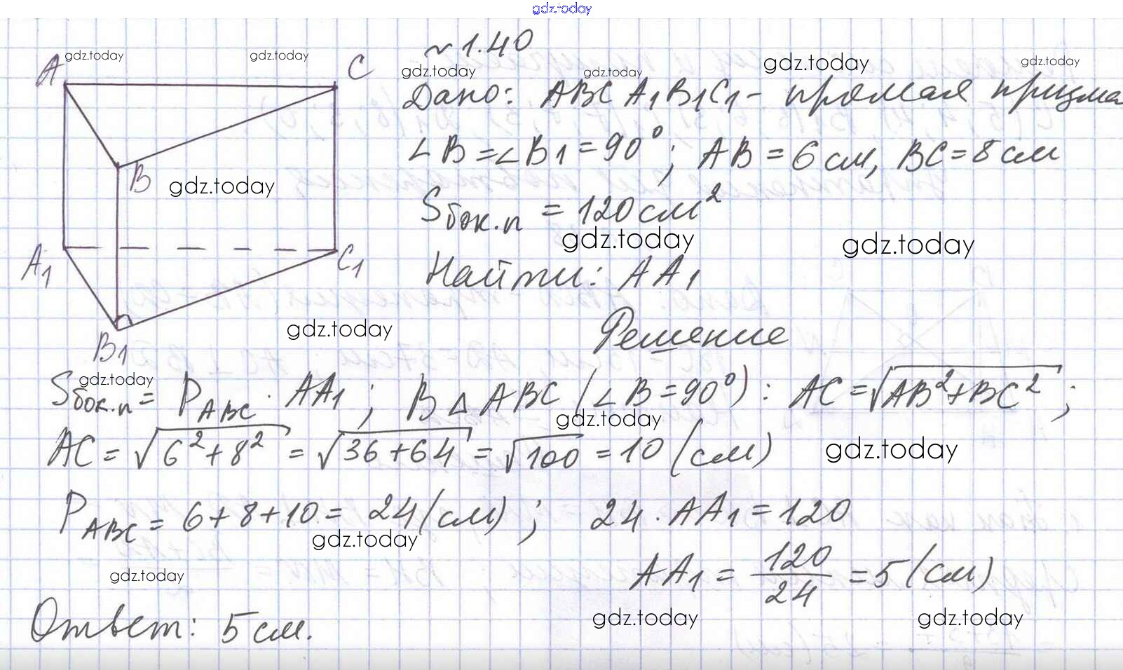 Ответы к Решение к §1 1.40 Учебнику по Геометрии для 11 класса Мерзляк, Номировский Базовый уровень Вентана-граф Алгоритм успеха 2019