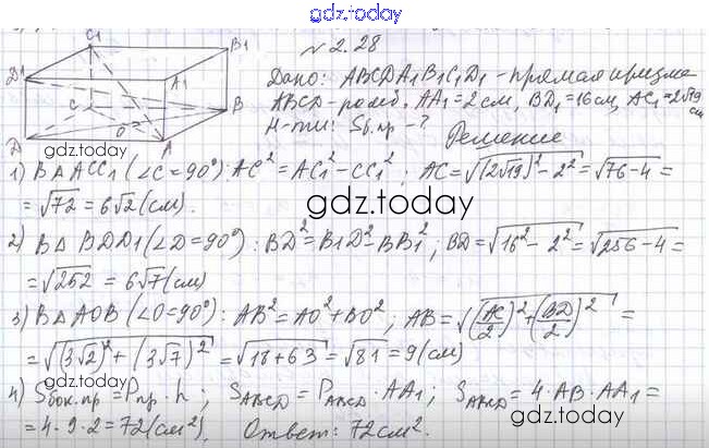 Ответы к Решение к §2 2.28 Учебнику по Геометрии для 11 класса Мерзляк, Номировский Базовый уровень Вентана-граф Алгоритм успеха 2019