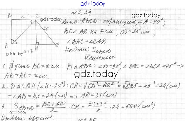 Ответы к Решение к §3 3.34 Учебнику по Геометрии для 11 класса Мерзляк, Номировский Базовый уровень Вентана-граф Алгоритм успеха 2019