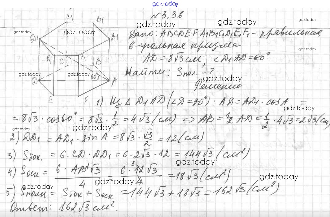 Ответы к Решение к §3 3.36 Учебнику по Геометрии для 11 класса Мерзляк, Номировский Базовый уровень Вентана-граф Алгоритм успеха 2019