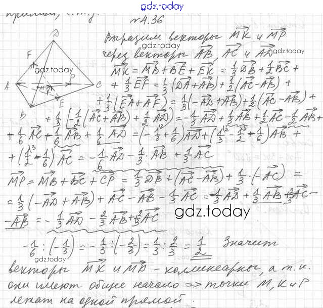Ответы к Решение к §4 4.36 Учебнику по Геометрии для 11 класса Мерзляк, Номировский Базовый уровень Вентана-граф Алгоритм успеха 2019