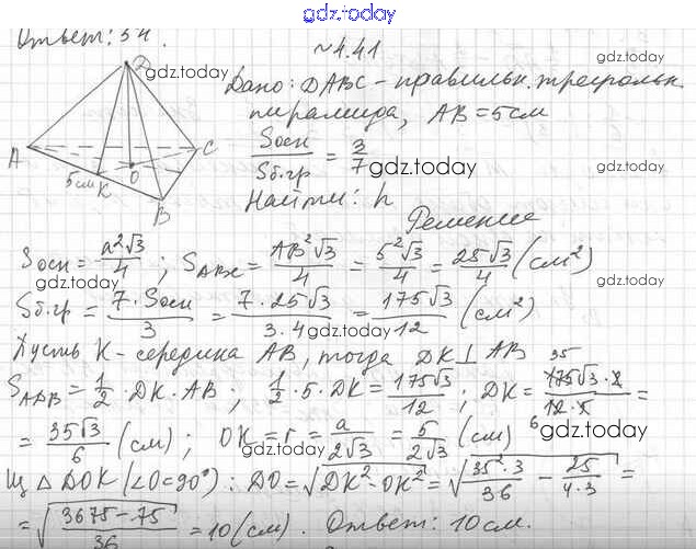 Ответы к Решение к §4 4.41 Учебнику по Геометрии для 11 класса Мерзляк, Номировский Базовый уровень Вентана-граф Алгоритм успеха 2019